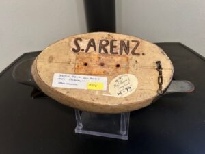 All of Serph’s decoys that I have seen had high heads, which are useful in Lake Winnebago’s winds and waves. We know that Serph produced diver decoys, including Canvasback and Bluebills, as well as Bluewing and Greenwing teal and mallard puddlers. Whatever he carved, his paint style captured the essence of the species! We also know that Arenz carved several floating silhouette decoys that he used in his own rig in the 1950’s. Most of Serph’s decoys have his name (S ARENZ) burnt into the bottom of each decoy, so most are easily recognized.