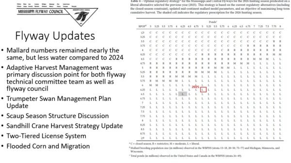 - Mississippi Flyway Dynamics: The USFWS is disengaging from the flyway system, forcing states to fund their own research (e.g., a new scaup strategy). The flyway is also pushing back on Louisiana’s request to ban flooded corn, citing biological shifts in migration patterns.